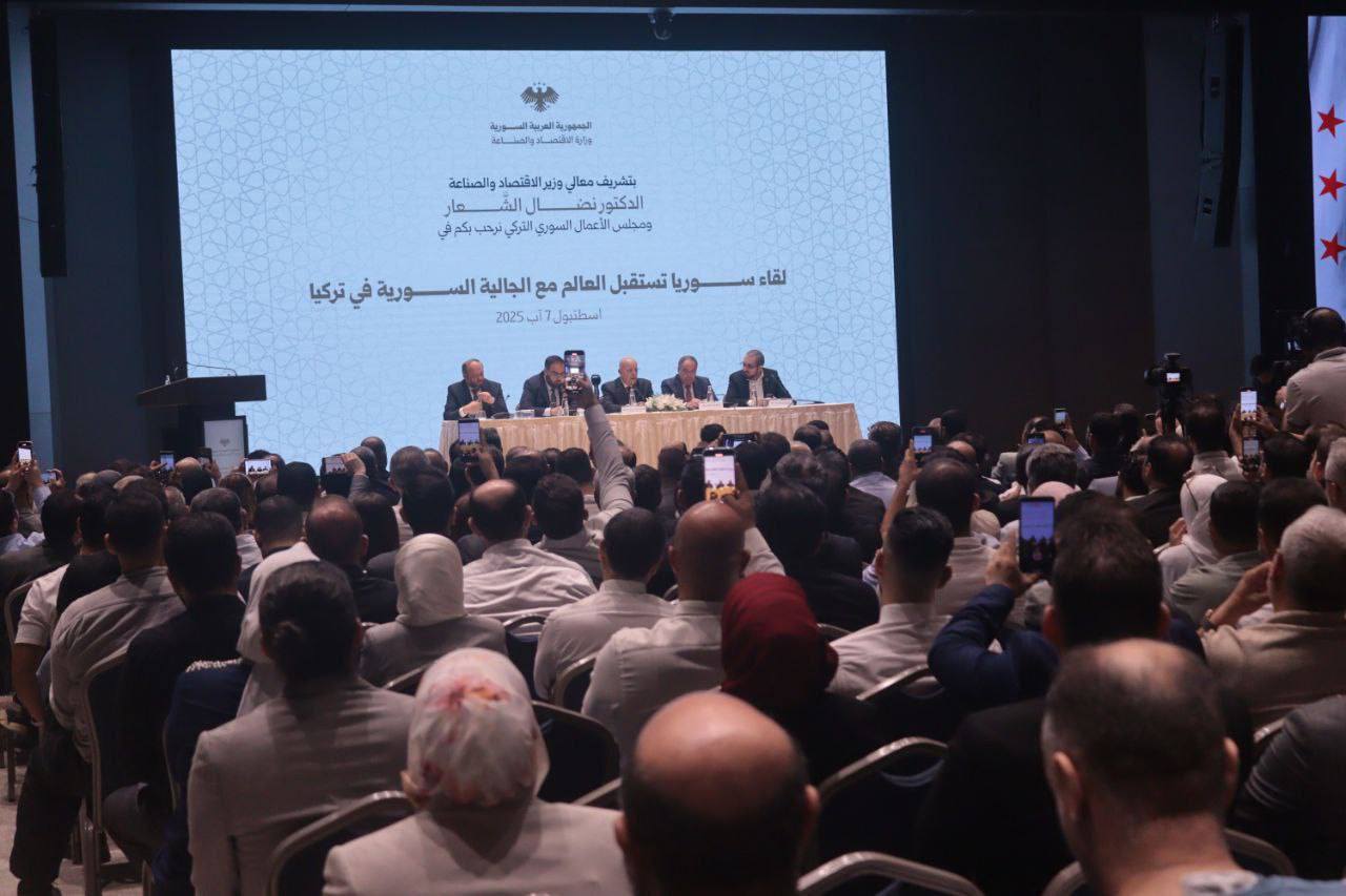 اختتم الوفد الاقتصادي السوري زيارته الرسمية إلى تركيا بلقاء موسّع مع الجالية السورية في إسطنبول، ضمن مؤتمر “سوريا تستقبل العالم” بحضور وزير الاقتصاد والصناعة الدكتور “محمد نضال الشعار” ومجلس رجال الأعمال السوري التركي.