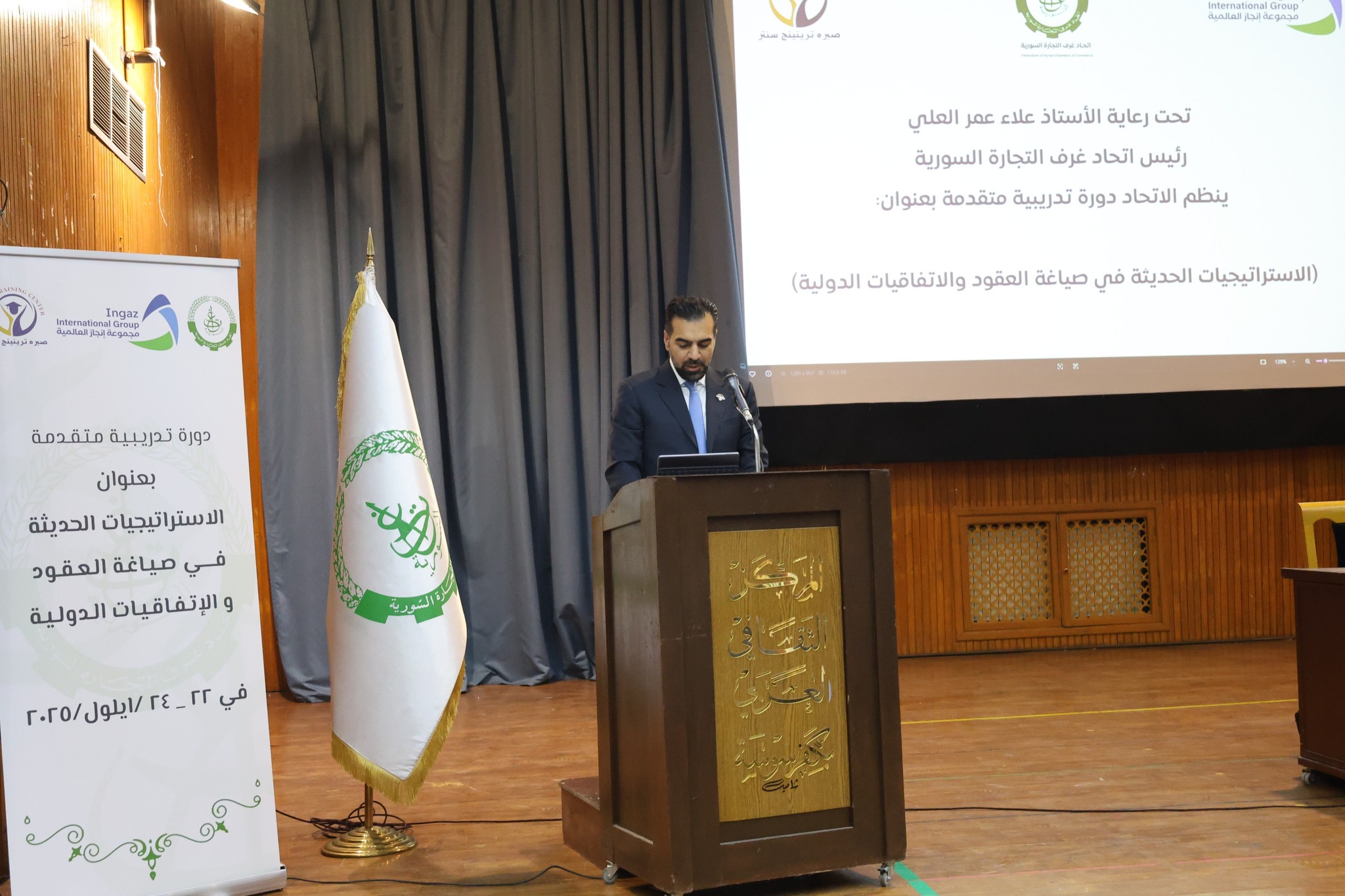 وأمل رئيس الاتحاد أن تُثمرَ هذهِ الدورةِ عن مخرجاتٍ عمليةْ تُساهم في رفعِ سويةِ العملِ التجاريْ والقانوني في سورياْ /وتُمكّن كوادِرَنا من التعاملِ بثقةٍ وكفاءةٍ مع بيئة الأعمال الدولية.